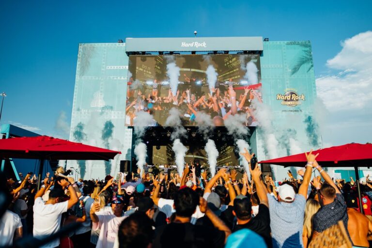That rhythm is shaped in large part by Hard Rock International, a founding partner whose role extends beyond sponsorship into curation. Nowhere is that more evident than at the Hard Rock Beach Club, positioned along Turns 11 through 13 of the Miami International Autodrome. Here, the race is not simply observed. It is absorbed in real time, framed by open-air performances, cabana-style seating, and a steady undercurrent of music that carries from day into night.