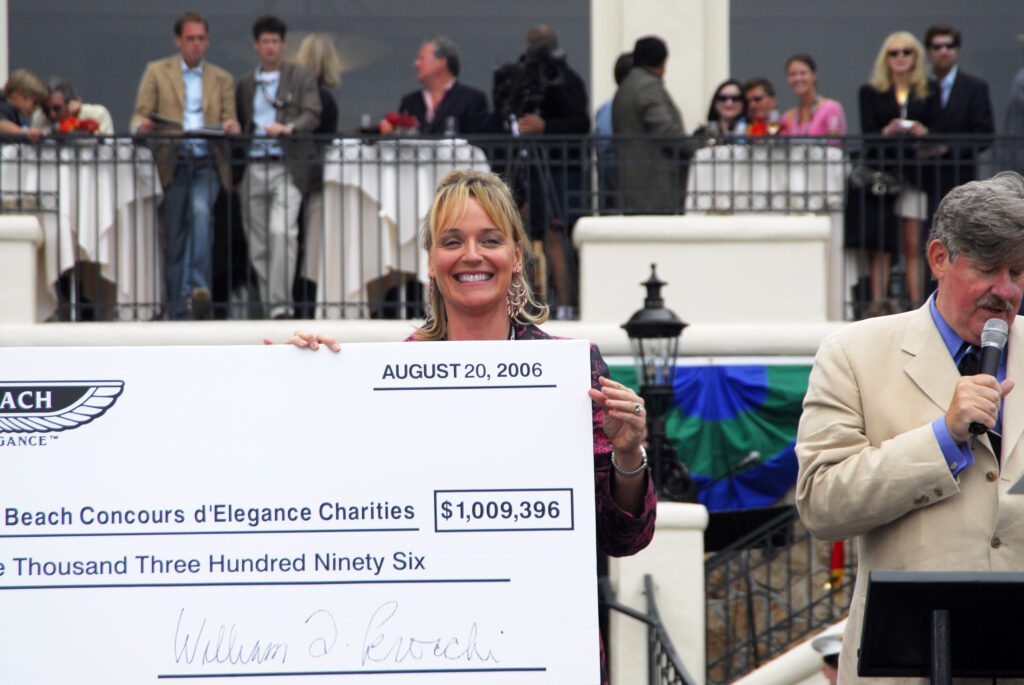 charity check during the awards ceremony. Photo Credit: Kimball Studios / Pebble Beach Concours d’Elegance
