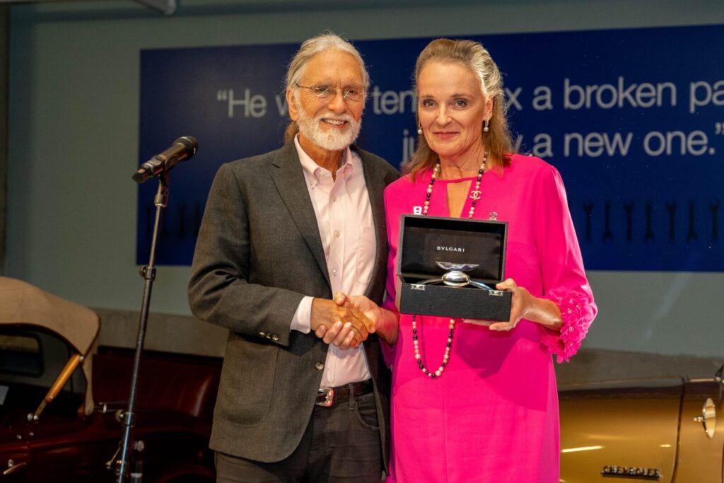 In 2024 at the annual Wheels and Heels Gala, America’s Automotive Trust presented Sandra Button with the Nicola Bulgari Award, honoring her contributions to preserving automotive heritage and promoting awareness of its importance.