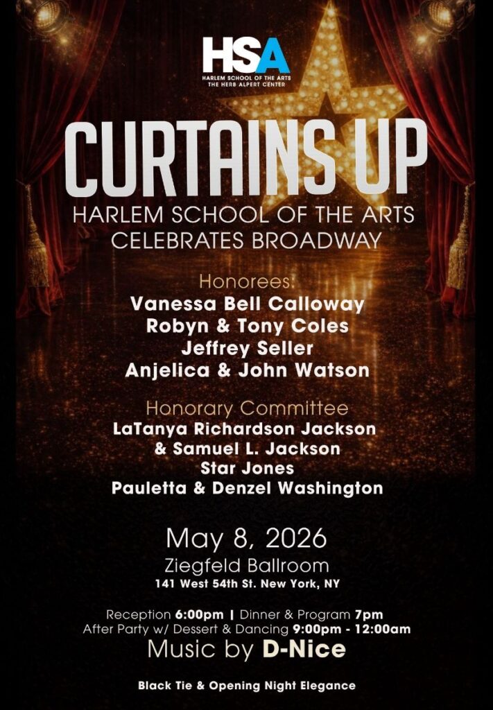 The Harlem School of the Arts (HSA) will host its signature annual gala, Curtains Up: HSA Celebrates Broadway, on Friday, May 8, 2026, at the storied Ziegfeld Ballroom. This is an evening where artistry, elegance, and philanthropy converge at the highest level.