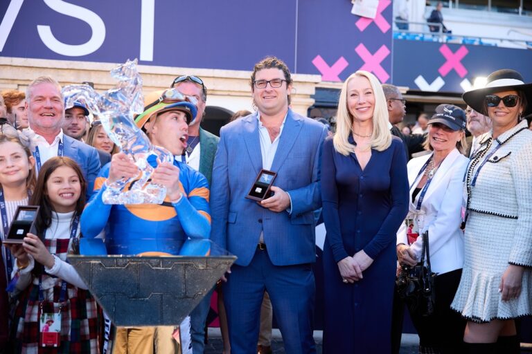 The commanding victory reinforced White Abarrio’s standing among the nation’s top dirt horses. Celebrations in the winner’s circle included Champagne Pommery toasts, with owners, trainers, and jockeys enjoying the moment together.